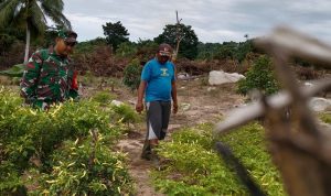 Budayakan Gotong Royong Babinsa Koramil 432-01/Toboali Bersama Warga Gadung Gotong Royong Bersihkan Kebun Desa