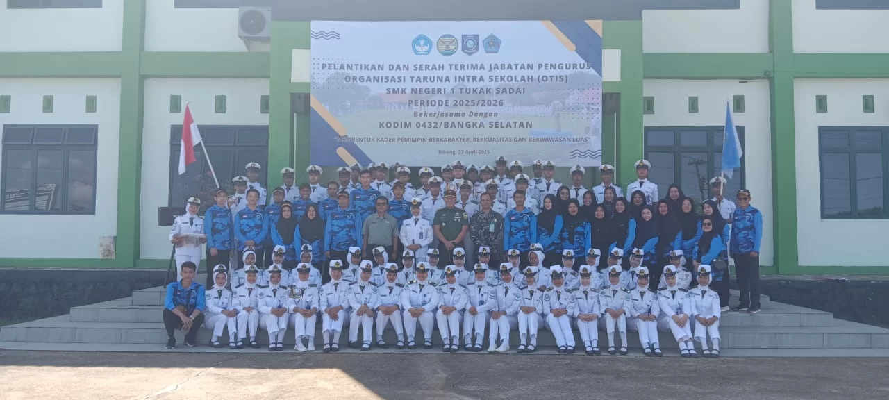 Gash – Kodim 0432/Basel Pelantikan dan serah terima jabatan pengurus Organisasi Taruna Intra Sekolah (OTIS) SMK Negeri 1 Tukak Sadai tahun ajaran 2025–2026 berlangsung khidmat di Markas Komando Distrik Militer (Kodim) 0432/Bangka Selatan, Rabu (tanggal kegiatan). Kamis (24/04/25)