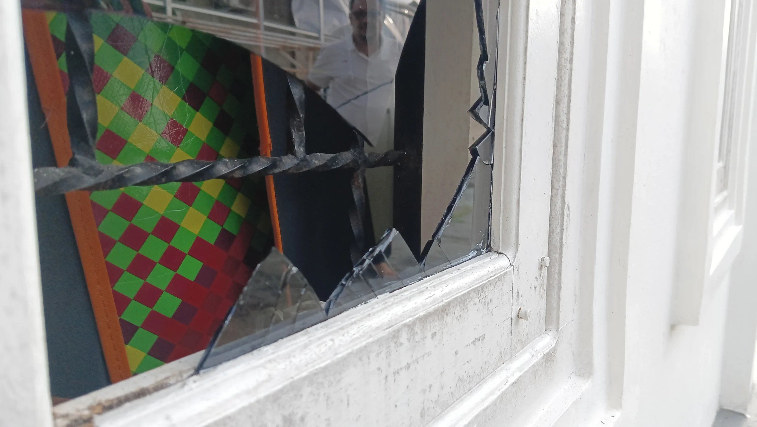 “Kaca-kaca pecah, bahkan engsel ikut lepas. Anak-anak saya sampai sekarang masih menangis dan trauma, bahkan tidak mau tinggal di rumah ini lagi,” katanya