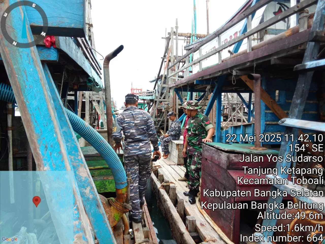 Gash – Sejumlah anggota yang tergabung dari Posbinpotmar TNI AL Toboali, Kodim 0432/Basel, Polairud polres Bangka Selatan dan Bidpam dan Was PIP kembali melaksanakan razia penertiban terkait maraknya aktifitas pertambangan Ponton Isap Produksi (PIP) ilegal di wilayah izin usaha pertambangan (WIUP) PT Timah Tbk, Tepatnya di perairan laut Sukadamai, Toboali, kabupaten Bangka Selatan (Basel), Provinsi Kepulauan Bangka Belitung (Babel), 22/05/2025, sekira pukul 10.46 WIB