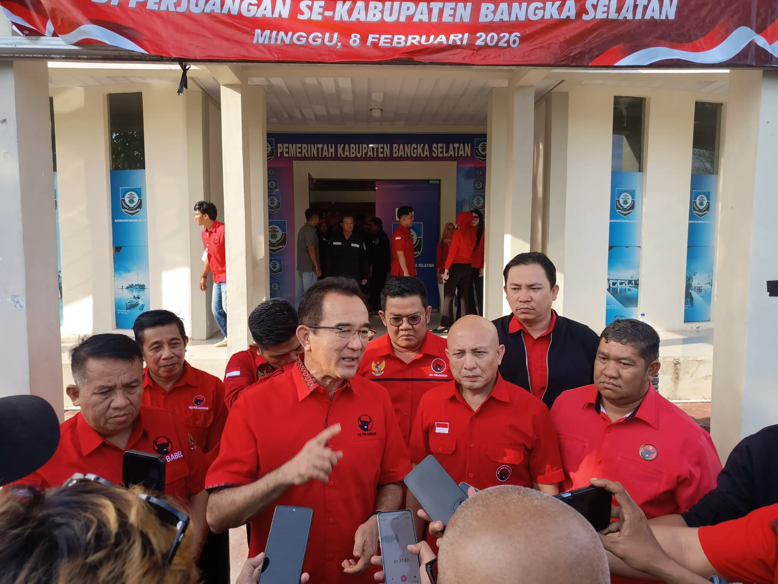 Turut hadir jajaran pengurus DPD PDI Perjuangan Provinsi Bangka Belitung (Babel), di antaranya Ketua DPD Didit Srigusjaya, Sekretaris DPD Imam Wahyudi, Ketua DPC Riza Herdavid serta pengurus lainnya.