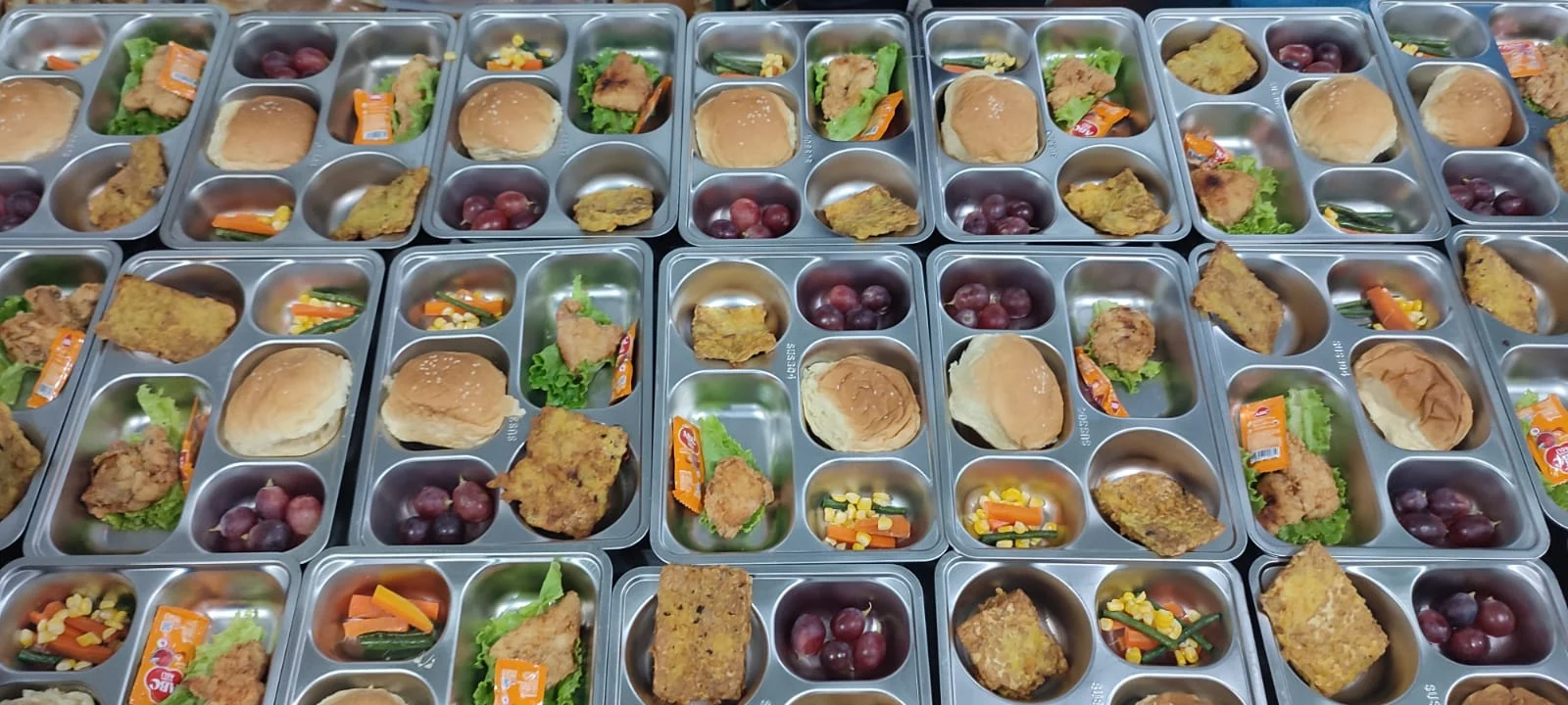 GASH – Deretan piring makanan berisi menu tersusun rapi di SPPG Angsana menandakan perkembangan bahwa program berjalan dengan lancar dan tertata.